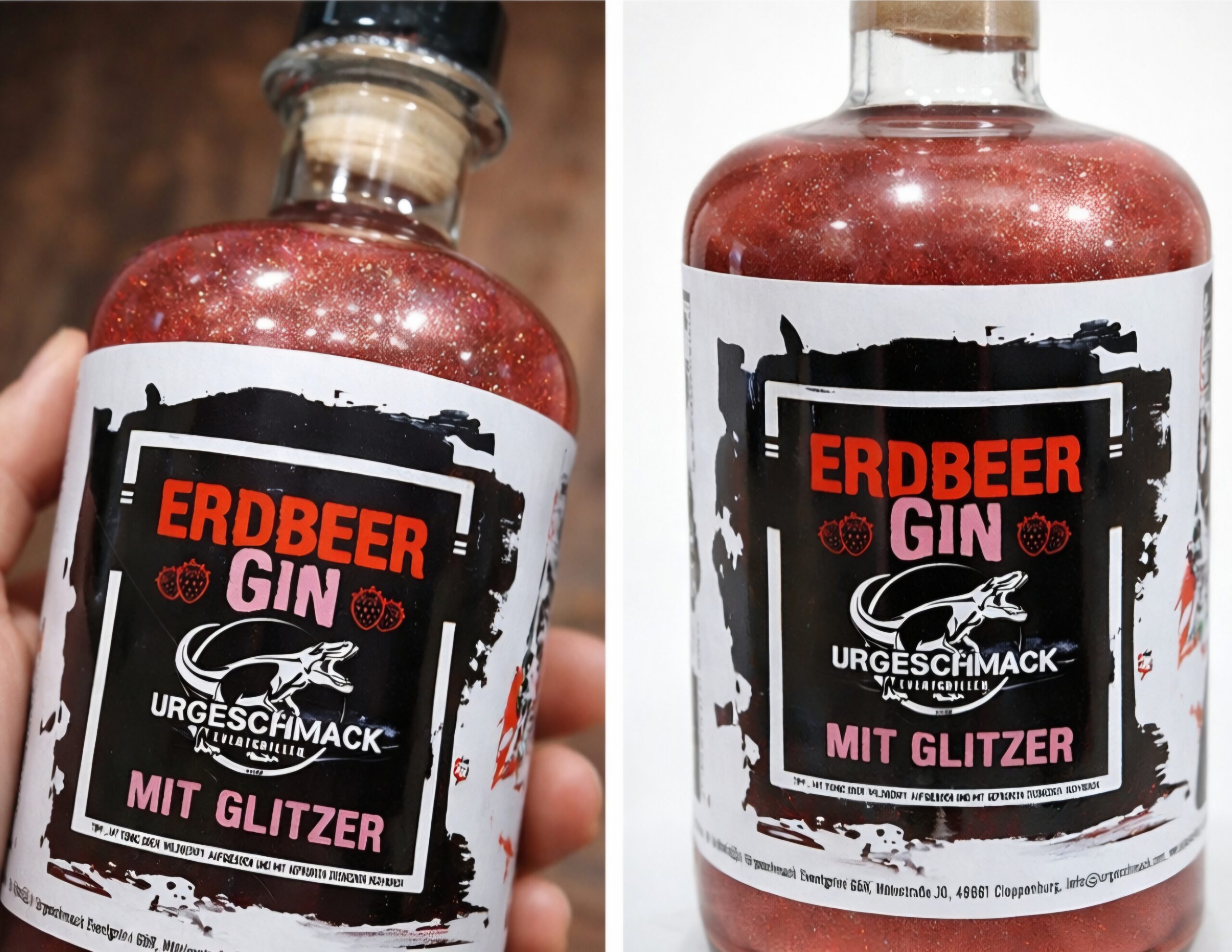 500ml | Glasflasche Erdbeere-Glitzer-Gin | Gin